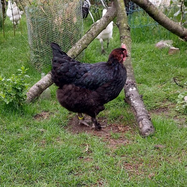 Die französische Marans ist eine Hühnerrasse, die für ihre dunkelbraunen Eier und ihr robustes Erscheinungsbild bekannt ist.